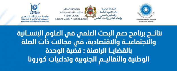 في إطار برنامج دعم البحث العلمي في العلوم الإنسانية والاجتماعية والاقتصادية، في مجالات ذات الصلة بالقضايا الراهنة : قضية الوحدة الوطنية والأقاليم الجنوبية وتداعيات كورونا، تقدمت جامعة عبد المالك السعدي بعشرة مشاريع ، أسفرت نتائج التقييم من طرف الخبراء المعتمدين لدى المركز الوطني للبحث العلمي والتقني عن فوز جامعتنا بتمويل ستة مشاريع من مختلف المؤسسات الجامعية التابعة لها، وهي كالآتي :