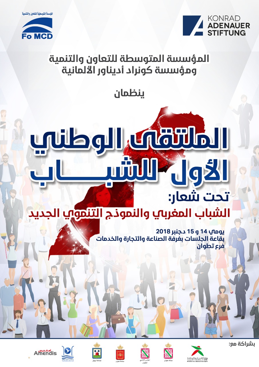 تنظم المؤسسة المتوسطية للتعاون والتنمية” و”مؤسسة كونراد أديناور الألمانية”، الملتقى الوطني الأول للشباب، تحت شعار” الشباب المغربي والنموذج التنموي الجديد” يومي 14 و15 دجنبر 2018 بمقر غرفة التجارة و الصناعة والخدمات بتطوان. للمزيد من المعلومات، المرجو تحميل الملف أسفله.