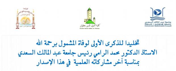 تخليدا للذكرى الأولى لوفاة المشمول برحمة الله الأستاذ الدكتور محمد الرامي، رئيس جامعة عبد المالك السعدي، بمناسبة آخر مشاركاته سيتم إصدار أعمال الندوة الدولية والتي كانت حول موضوع: "الخطاب الديني في مواجهة الأوبئة وعلاج الظواهر السلبية في المجتمعات".