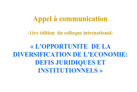 Le département Droit Privé de la FSJEST et le Master Droit International des Affaires organisent la 1ère édition du colloque international sous le titre : « L’opportunite de la Diversification de L’economie: Defis Juridiques et Institutionnels » et ce le SAMEDI 19 Janvier 2019 dans la salle du Conseil Régional Tanger – Tétouan –Al Hoceima.