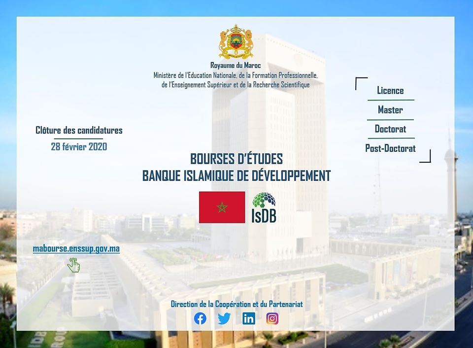 La Banque Islamique de Développement (BID) décerne, au titre de l'année universitaire 2020-2021, des bourses d’études aux cycles de Licence, Master, Doctorat Et Post-Doctorat au profit des étudiants issus de ses pays membres