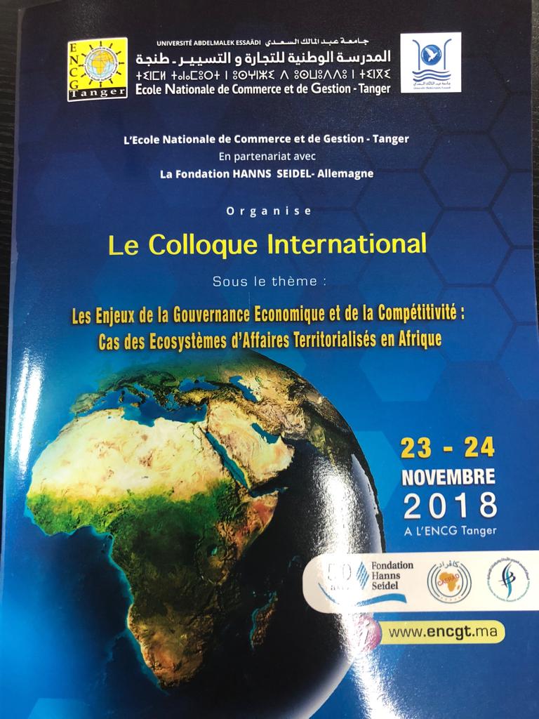 L’Ecole Nationale de Commerce et de Gestion de Tanger et Fondations Hanns Seidel- Allemagne organisent le Colloque International sous le thème : "Les enjeux de la gouvernance économique et de la compétitivité : cas des écosystèmes d’affaires territorialisés" le Vendredi 23 novembre 2018.