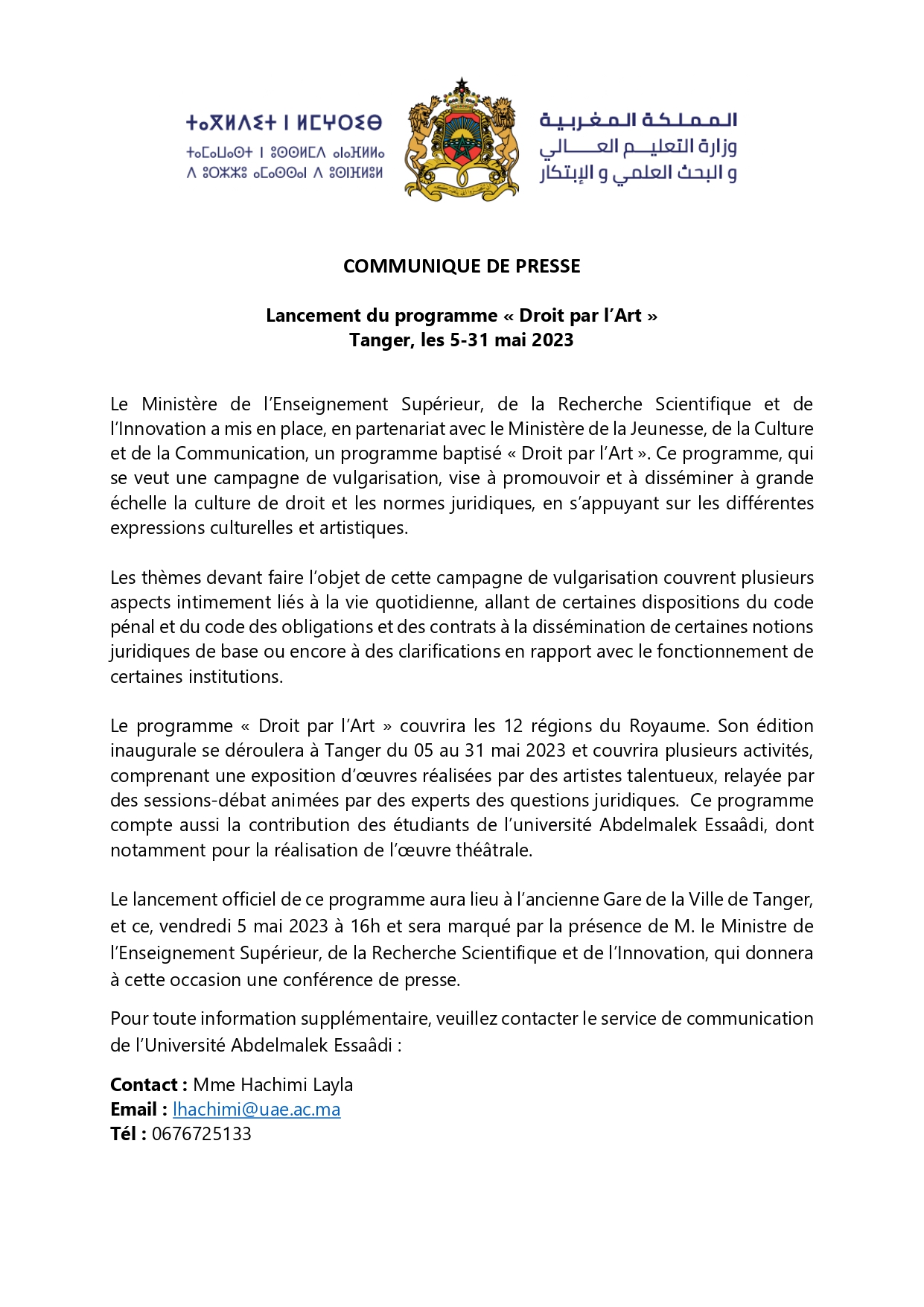 Communiqué de presse: lancement du programme "Droit par l'art"