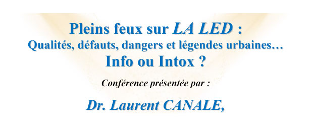 L'équipe d'Optique & Photonique de la Faculté des Sciences de Tétouan de l'Université Abdelmalek Essaadi organise le Jeudi 19 décembre 2019 à 10h dans la salle des conférences de la Faculté des Sciences de Tétouan, une journée sous le titre : "Pleins feux sur LA LED : Qualités, défauts, dangers et légendes urbaines… Info ou Intox ?". La Conférence sera présentée par Dr. Laurent CANALE, Ingénieur de Recherche au CNRS du Groupe de Recherche ‘Lumière et Matière’ (LM) du Laboratoire LAPLACE à Toulouse (France), Président de l’Association Française de l’Eclairage Midi-Pyrénées, suivie d’un débat sur "L’Eclairage et efficacité énergétique" concernant l’Efficacité Énergétique de l’Éclairage en Afrique du Nord.