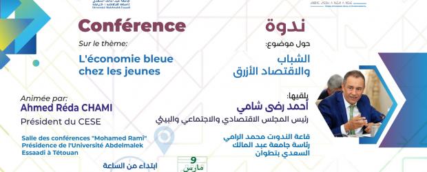 L'Université Abdelmalek Essaâdi et le Conseil Economique, social et Environnemental (CESE) co-organisent une conférence autour de : « L’économie bleue chez les jeunes », animée par M. Ahmed Reda Chami, Président du CESE, et ce le jeudi 09 mars 2023 à 10h à la présidence de l’Université Abdelmalek Essaâdi.
