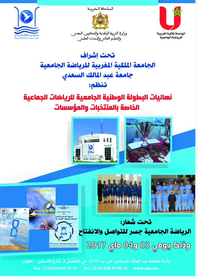 L'Université Abdelmalek Essaadi accueille les finales du championnat national universitaire des sports collectifs et ce les 3 et 4 mai 2017.