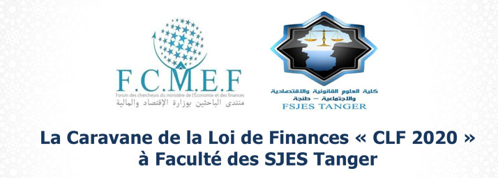 de la loi de finances 2020. Cette action vise à simplifier les dispositions de la loi de finance annuelle pour les citoyens marocains, particuliers, professionnels & académiciens. La caravane arrive à sa 5 ème étape « Tanger ». Dans ce cadre, le Forum des Chercheurs du Ministère de l'Economie & des Finances (F.C.M.E.F.) organise, en partenariat avec Faculté des sciences juridiques économiques et sociales de Tanger le Samedi 08 Février 2020 à partir de 10h, une conférence - débat et ce à la salle de conférence de la Faculté.