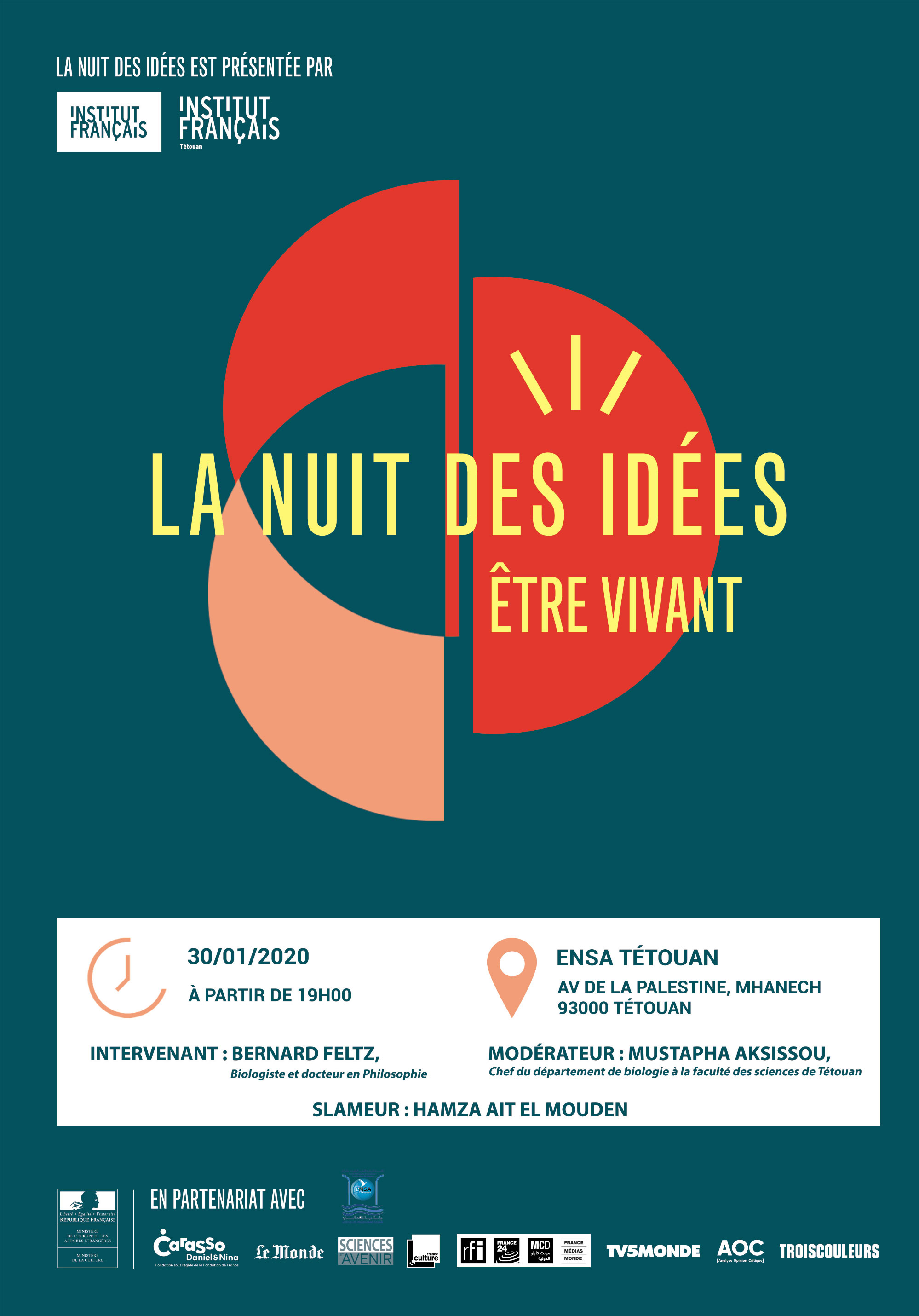 Le Directeur de l'Ecole Nationale des Sciences Appliquées de Tétouan (ENSATe) et le Directeur de l'Institut Français de Tétouan prendront part à la nuit des idées qui aura lieu le jeudi 30 janvier 2020 à partir de 19h à l'amphi de l'ENSA de Tétouan.