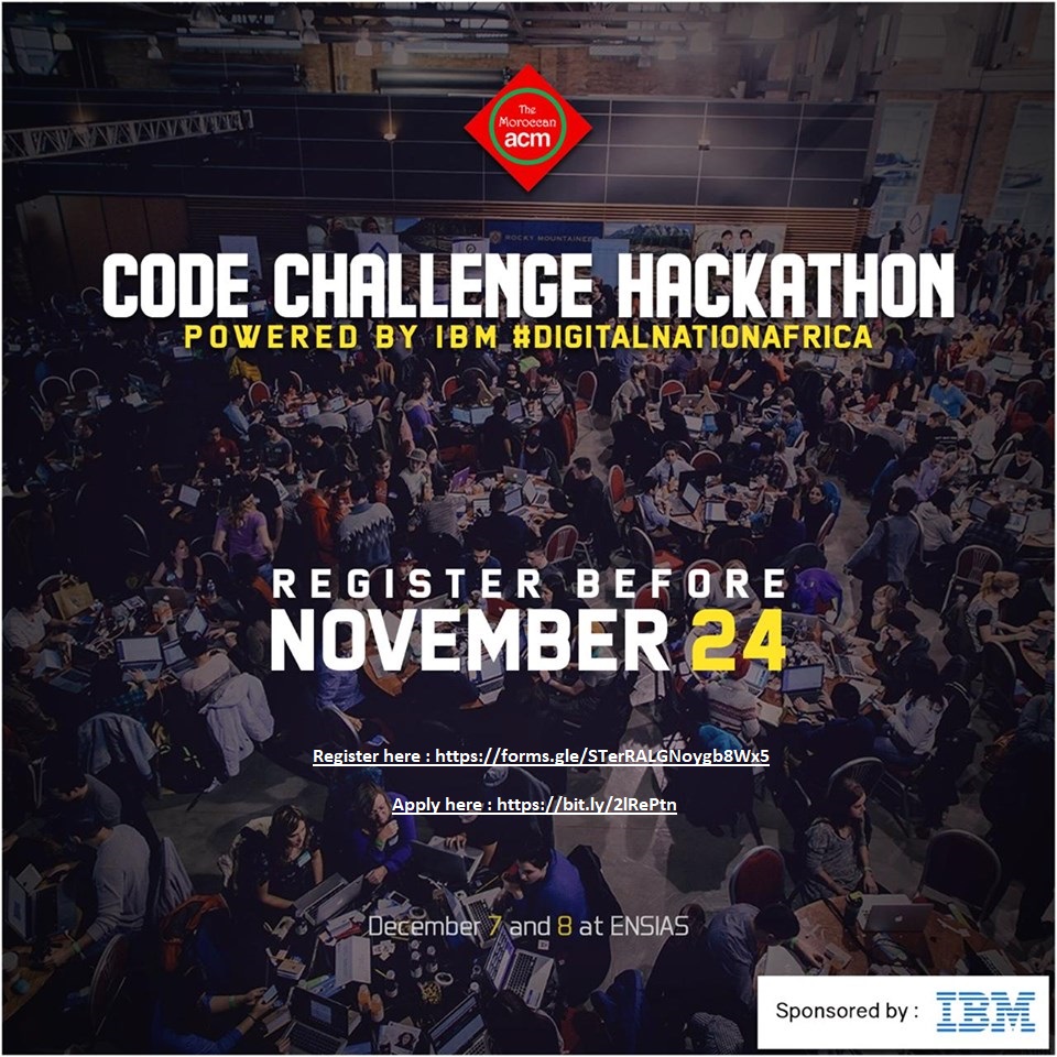Mr BENHOUMAN, exposera, aussi, un aperçu sur la compétition "CODE CHALLENGE" organisée par ACM (Association of Computer Machinery - Morocco Section) et sponsorisée par IBM et "#DigitalNationAfrica". Cette compétition aura comme objectif de mettre les étudiants développeurs dans des situations de défi et de challenge dans les technologies et techniques de programmation. Cette compétition permettra aux étudiants le cumul d'une expérience dans le développement de solutions innovantes, créatives et appliqués aux domaines de la santé, l'éducation, l'agriculture et l'eau. D'autre part, un Consultant dans la sécurité exposera un séminaire sur "Security Intelligence & Cybersecurity".