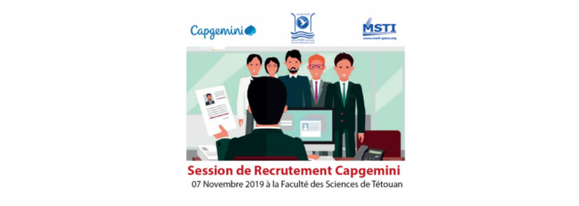 Capgemini, un des leaders mondiaux du conseil et des services informatiques, a choisi la Faculté des Sciences de Tétouan pour la 3ème fois pour faire bénéficier les étudiants de l'Université Abdelmalek Essaadi d'un programme de recrutement 2019 -2020. Lors de précédentes expériences, Capgemini a recruté plus 95% des stagiaires et qui sont actuellement salariés en CDI.